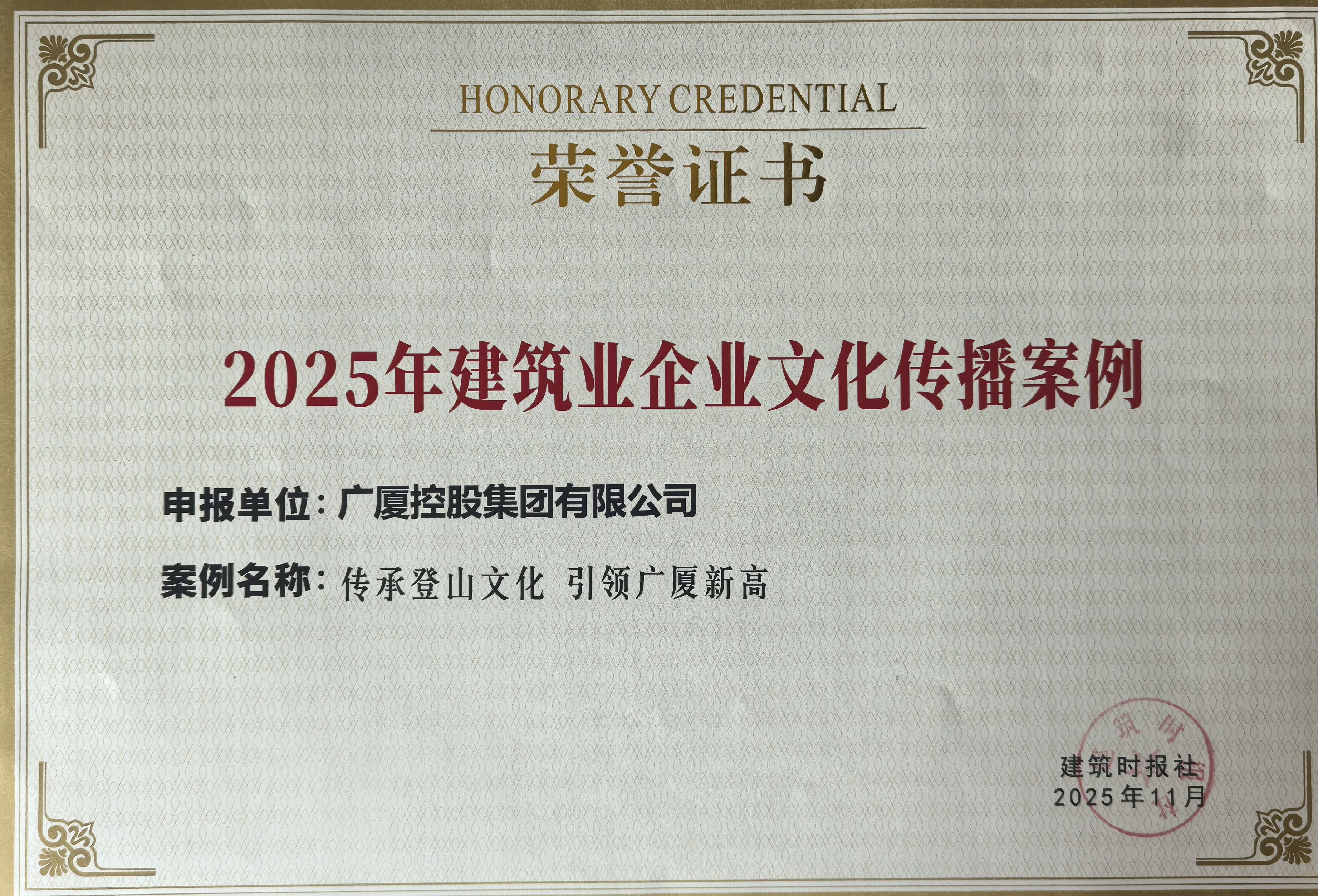 11月20日,2025年建筑业企业文化成果发布会在陕西咸阳开幕,广厦…