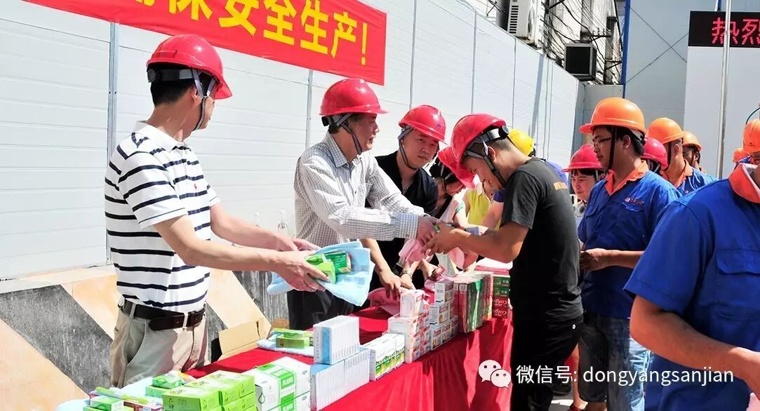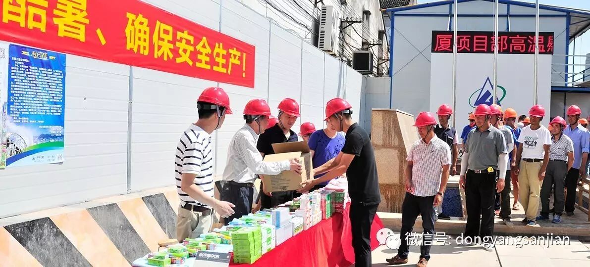 7月15日上午,烈日炎炎,热浪滚滚。控股董事局副主席兼东阳三建董事长楼正文在胡迅华副总经理陪同下,顶着高温酷暑,亲自来到浙沪区域公司东阳市供销大厦工程项目部,亲切慰问依然坚持在工作第一线的施工人员,为他们送上正气水、保济丸、风油精等防暑降温用品,这一举动,让现场工人倍感温情。